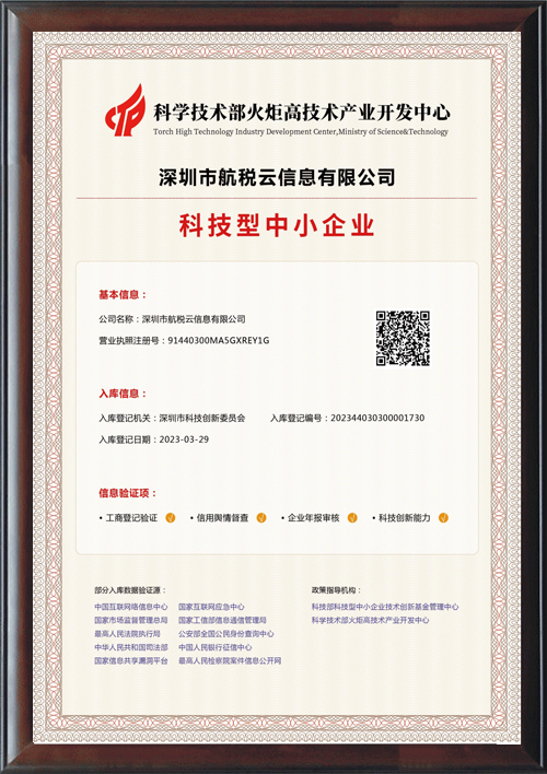 深圳市航税云信息有限公司(以下简称航税云)成立于2021年08月15日,是国家级高新技术企业、深圳市优秀软件企业、深圳市软件和信息技术服务业百强企业。